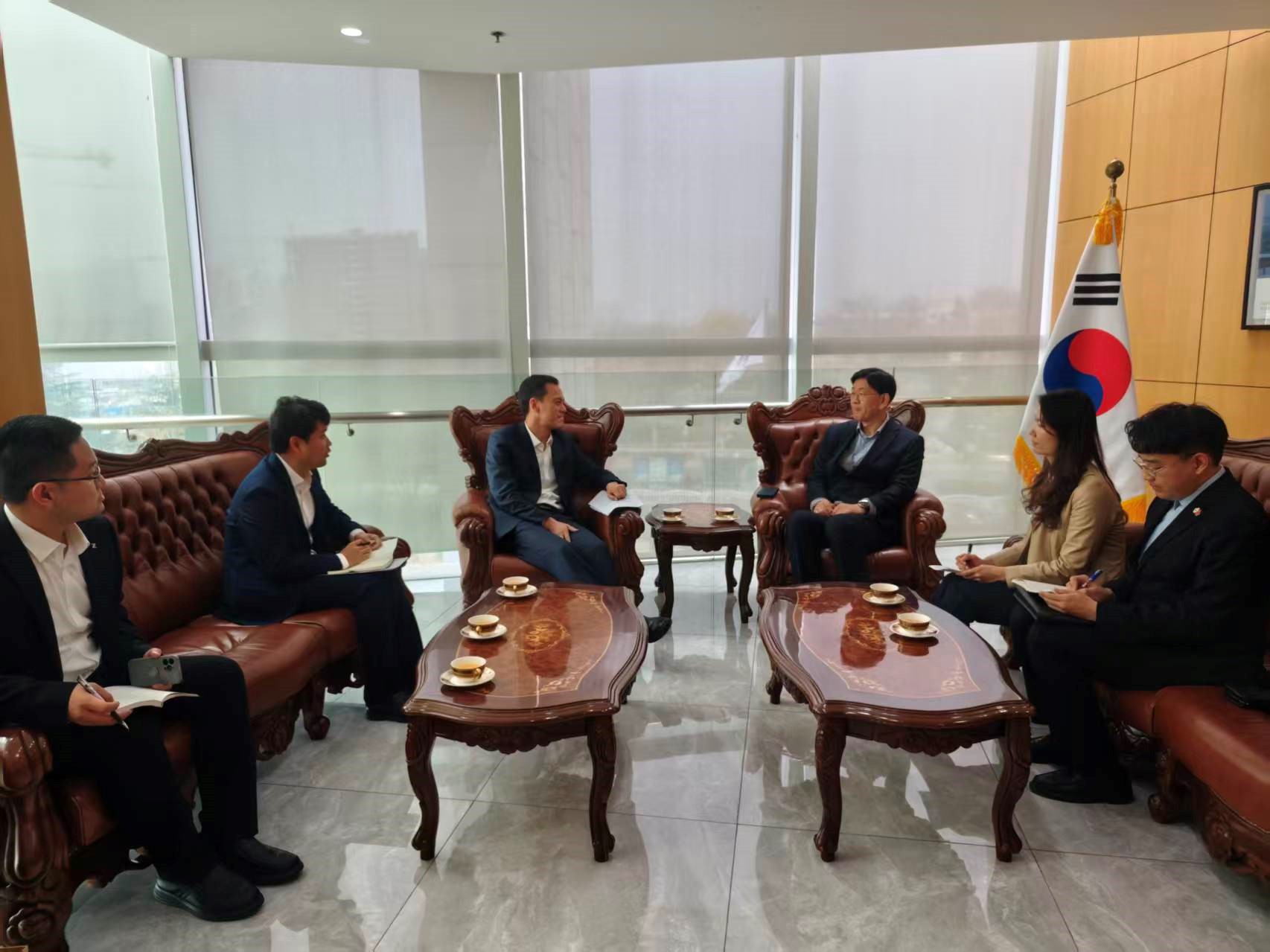 류창수 총영사는 3.30(월) 총영사관을 방문한 Yang Donglin 옌타이시 상무국장 일행을 접견하고, 한-옌타이 간 경제협력 및 기업 교류 심화, 금년도 중점 사업 등에 대해 논의하면서, 총영사관-옌타이시 상무국 간 작년에 이어 올해도 함께 소통하고 협력하여 다양한 분야에서 성과를 창출해나가자고 하였습니다.